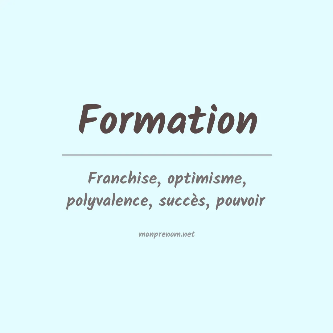 Il y a 1 personnes portant le prénom Formation. Étant le 63332º prénom le plus populaire.