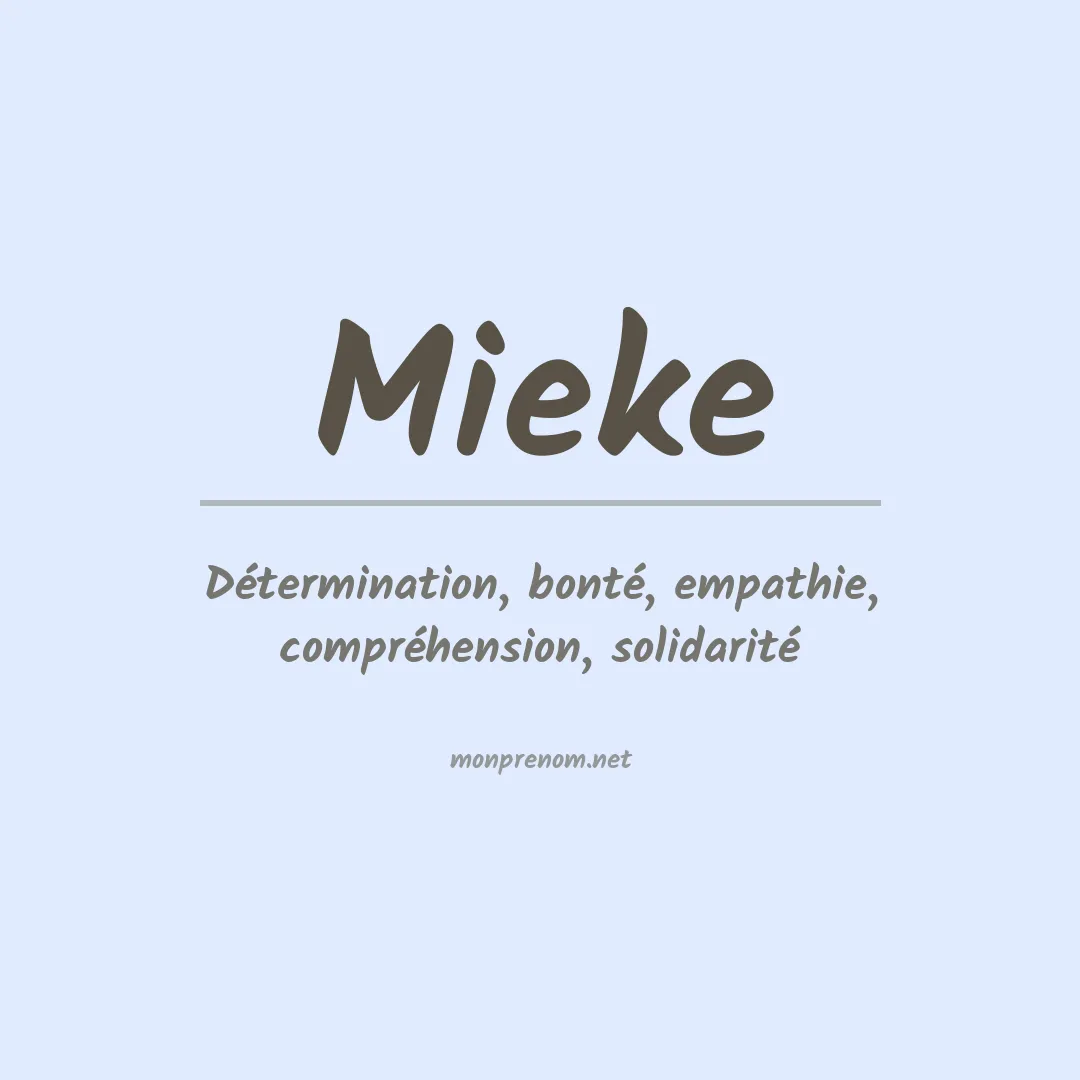 D'autres prénoms similaires à Mieke sont Mike Micke Minke Miske Pike Rieke